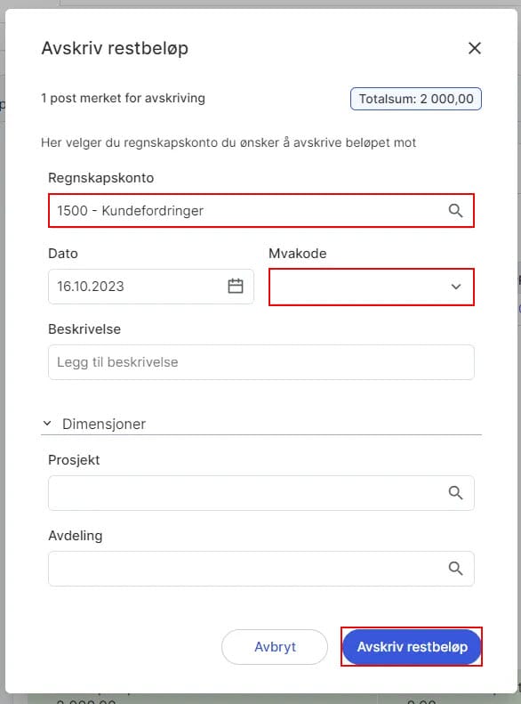 4. Klikk på Avskriv restbeløp.