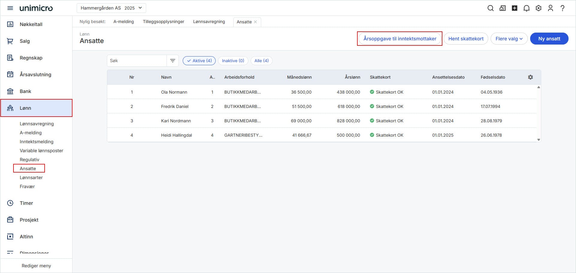 1. Gå til Lønn i venstremenyen og velg Ansatte.