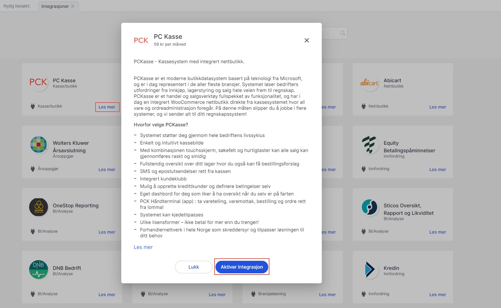 Vi jobber fortløpende med å gjøre aktiveringsprosessen rundt den enkelte integrasjonen tydeligere for deg i markedsplassen. Vi har også et mål om at de fleste integrasjoner skal være server-autentiserte.