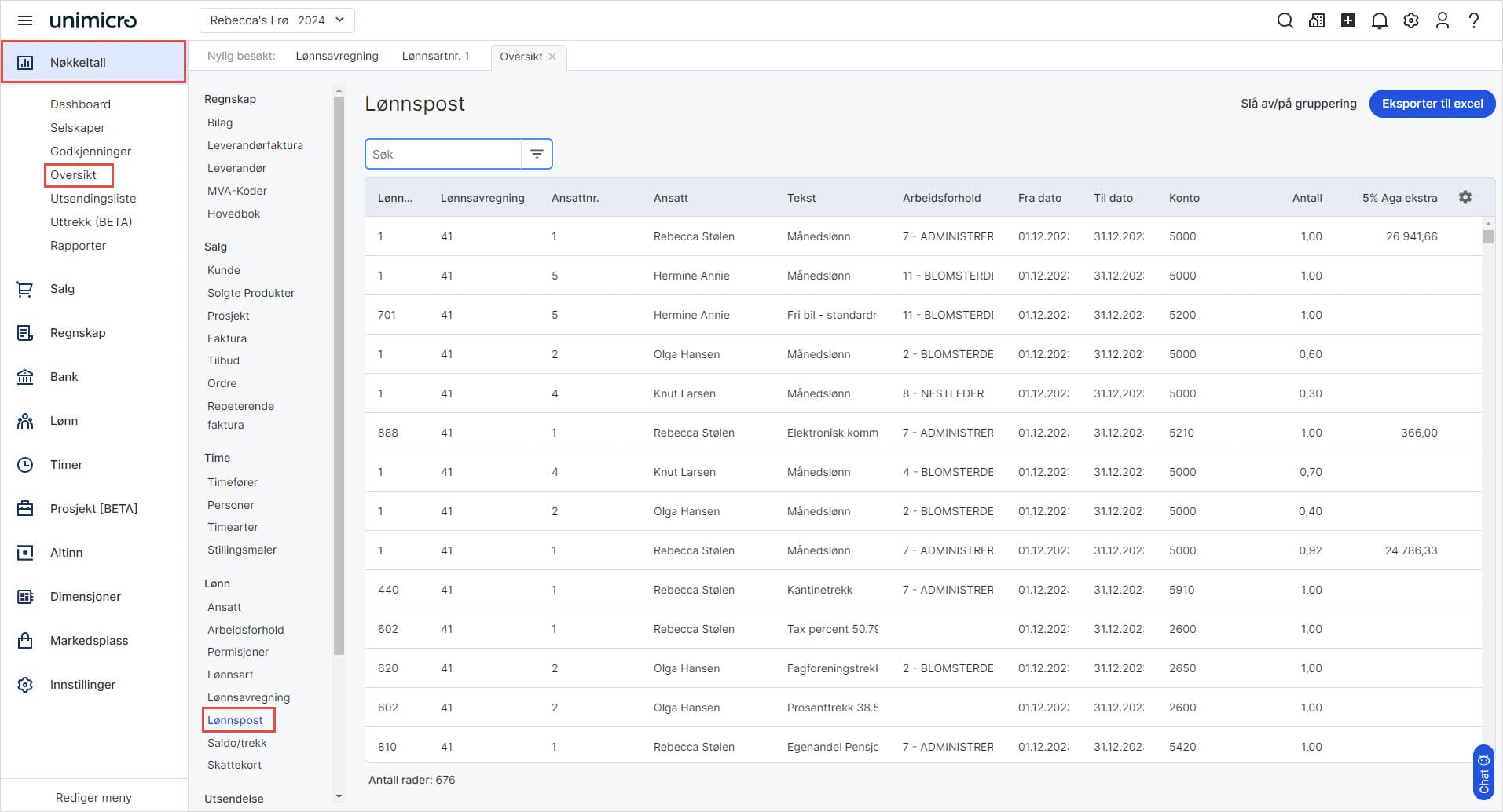 6. Klikk på Eksporter til Excel for å laste ned oversikten til Excel-fil.