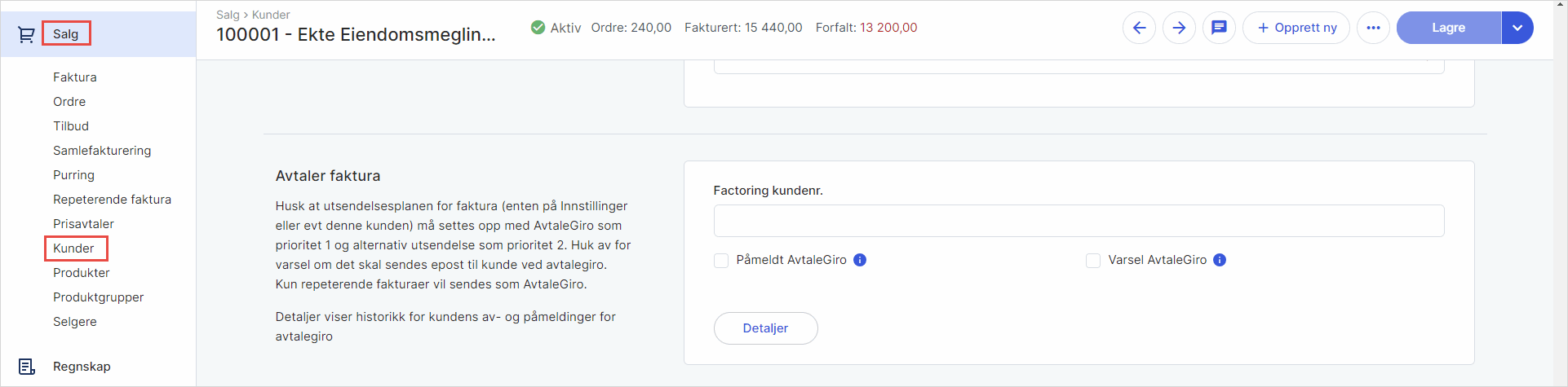 Kunden har AvtaleGiro, og KID-oppsett og kundenummer er videreført fra tidligere system
