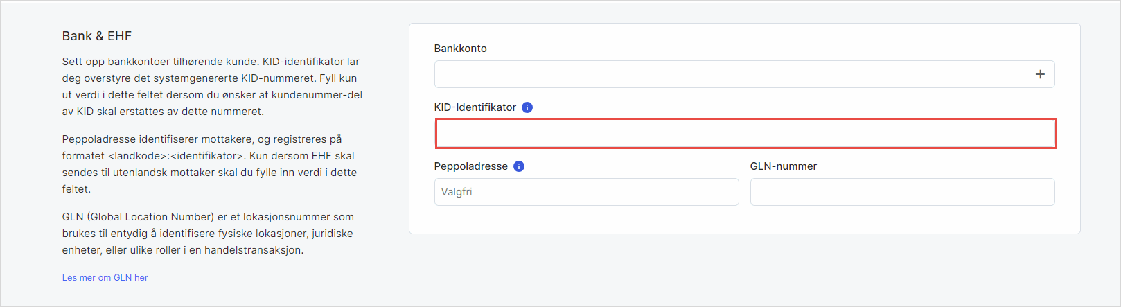 - Bruk KID-oppsett fra det gamle systemet i kombinasjon med feltet KID-identifikator på kundekortet. Har en kunde fått et annet kundenummer etter overgangen til det nye systemet, legges det gamle kundenummeret inn i dette feltet. Denne prosessen må gjentas for hver kunde som har fått nytt kundenummer.
