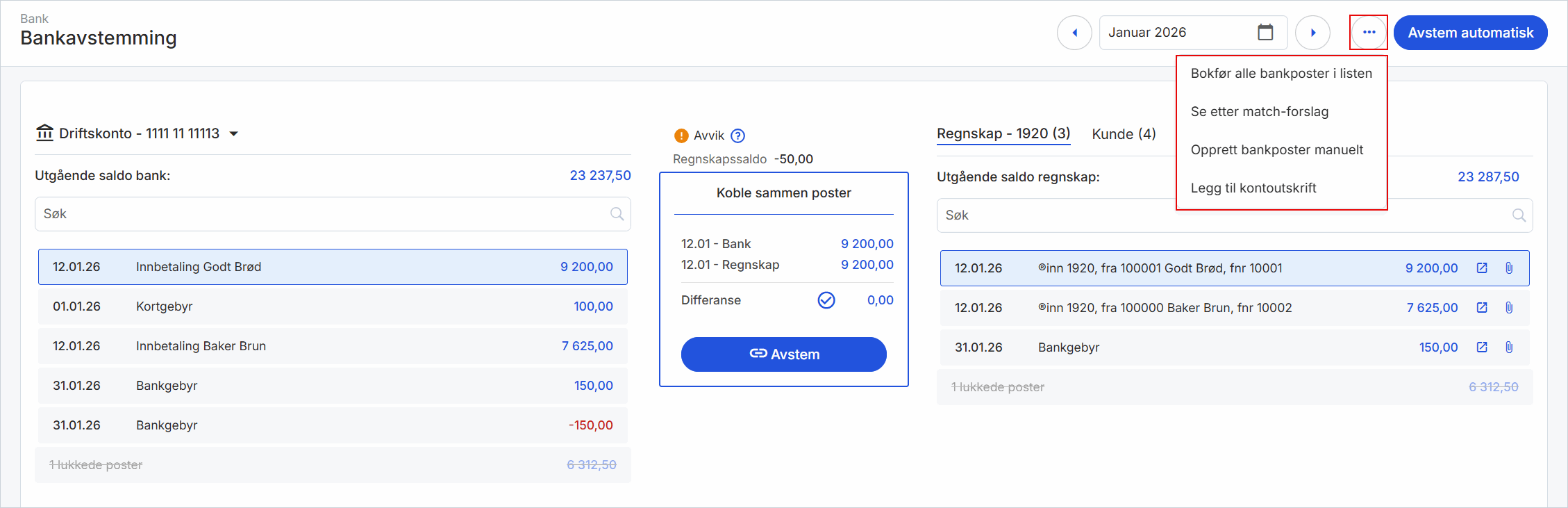 Under de tre kulepunktene finner du også flere funksjoner i bankavstemmingen.