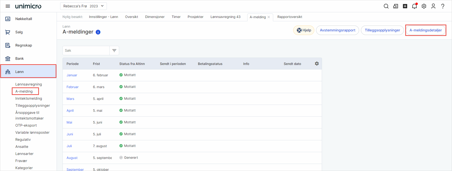 1. Gå til Lønn i venstremenyen og velg A-melding.