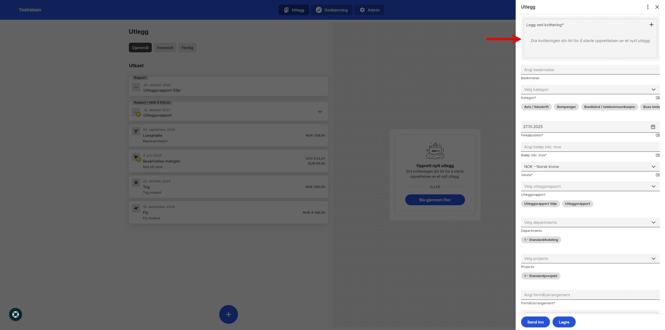 Feilmelding om manglende kvittering, men bildet er lastet opp Sist oppdatert 27.10.2025 Denne artikkelen gjelder bruker av Unimicro Reise og Utlegg. Om du har lagt til bilde av en kvittering som vedlegg og ikke under Legg ved kvittering, vil du få en feilmelding om at bilde mangler. Klikk på Legg ved kvittering.