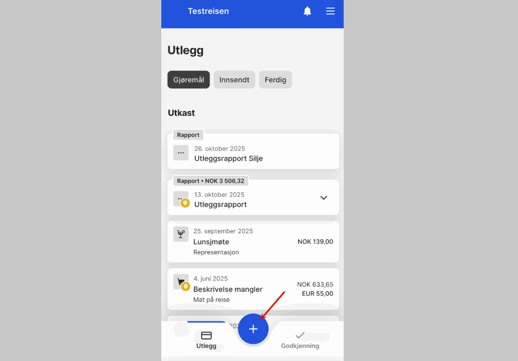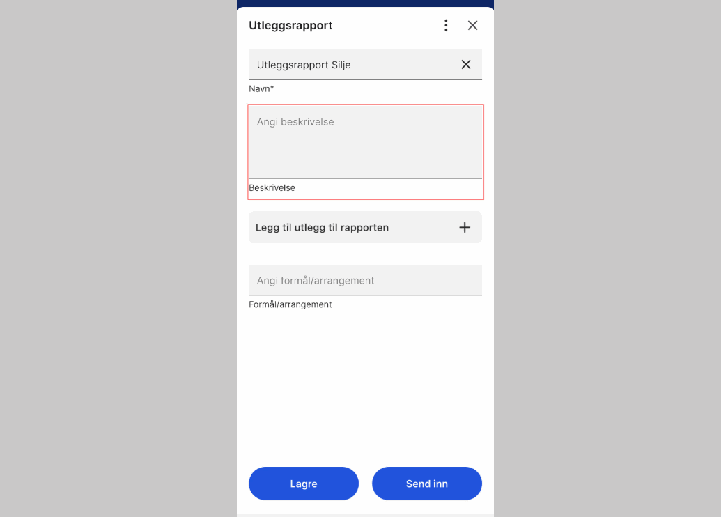 1. Velg utlegget du skal sende inn.
