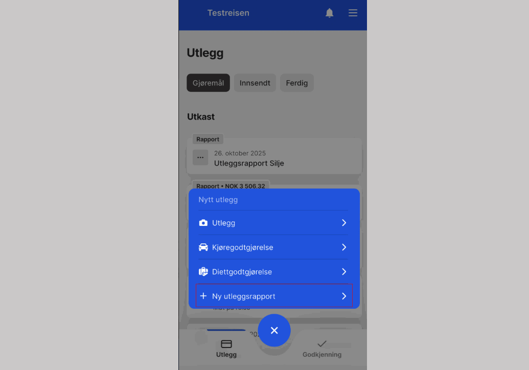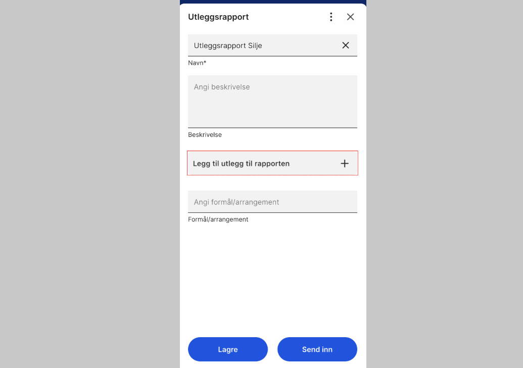 Du kan velge mellom å sende inn et enkelt utlegg eller opprette en utleggsrapport.