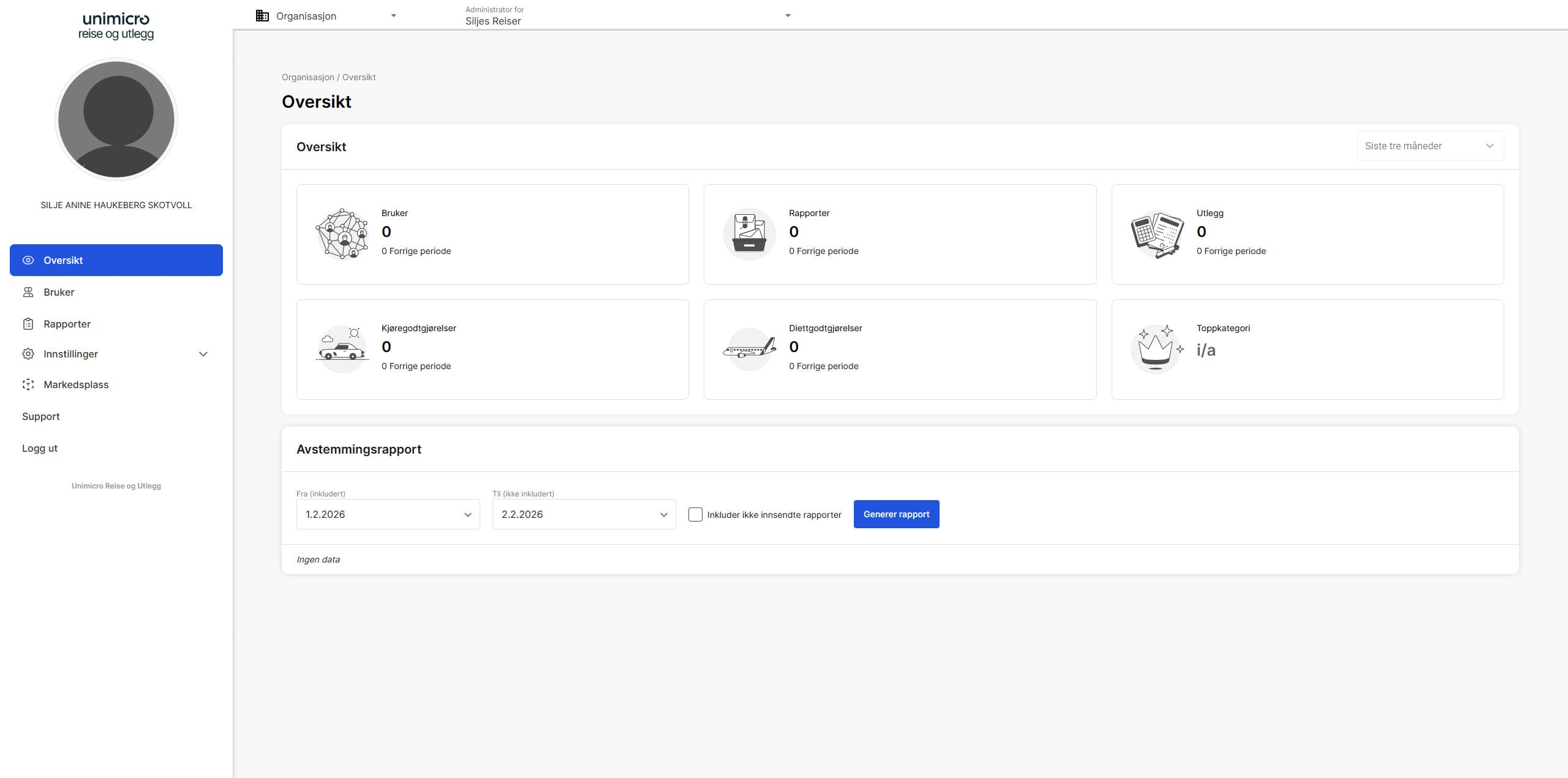 Ved å klikke på Unimicro Reise og Utlegg, blir du sendt inn i Unimicro Reise og Utlegg