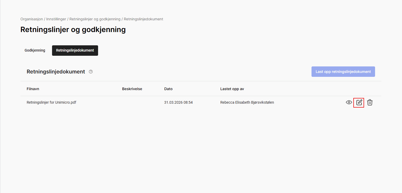 Du kan klikke på rediger for å endre filnavn og beskrivelse.