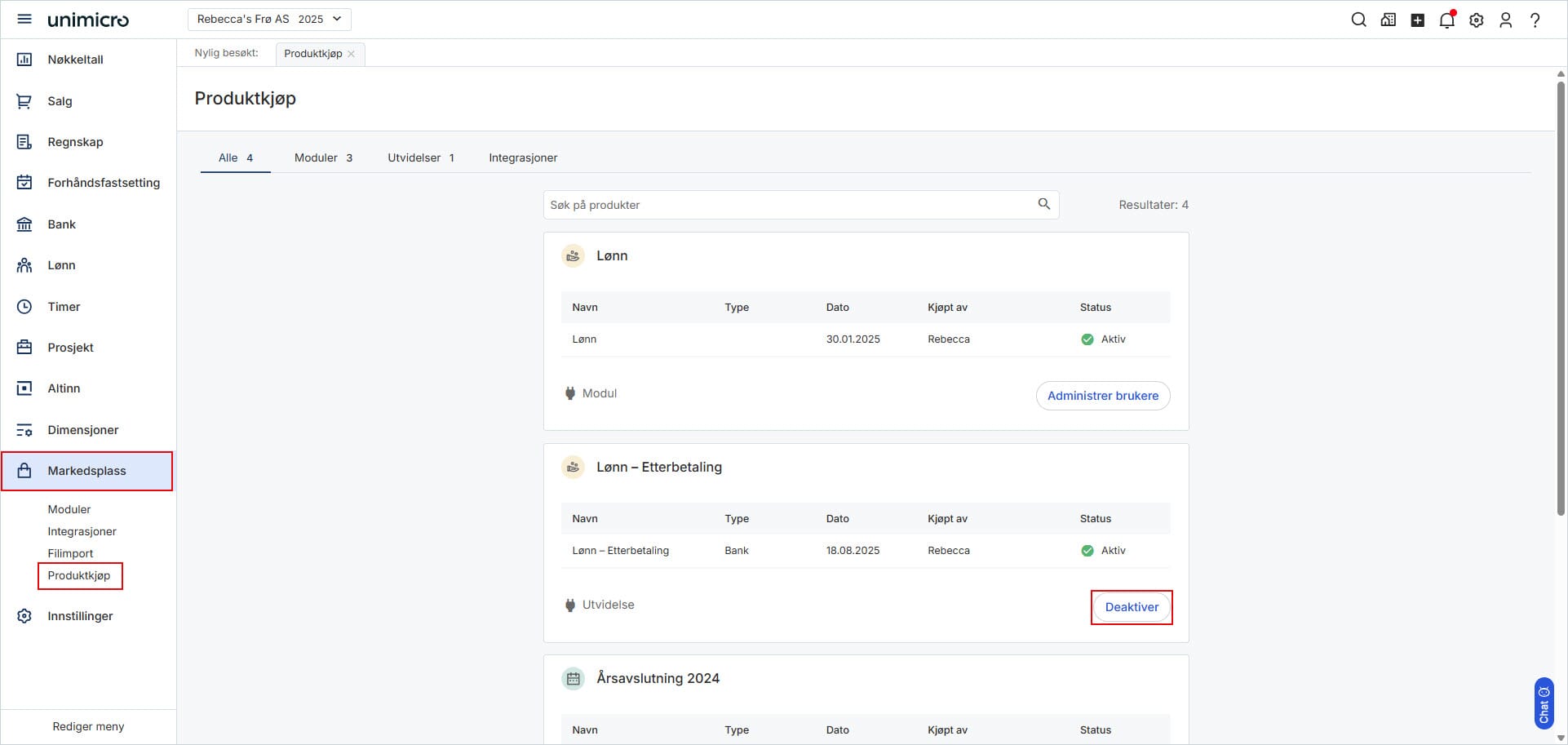 2. Finn Lønn - Etterbetaling og klikk på Deaktiver.