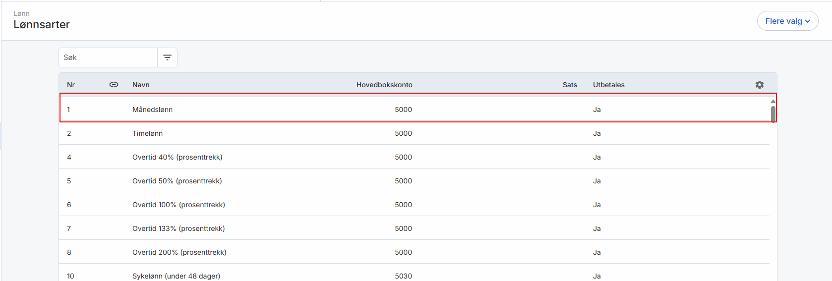 2. Klikk på Flere valg og velg Lønnsarter.