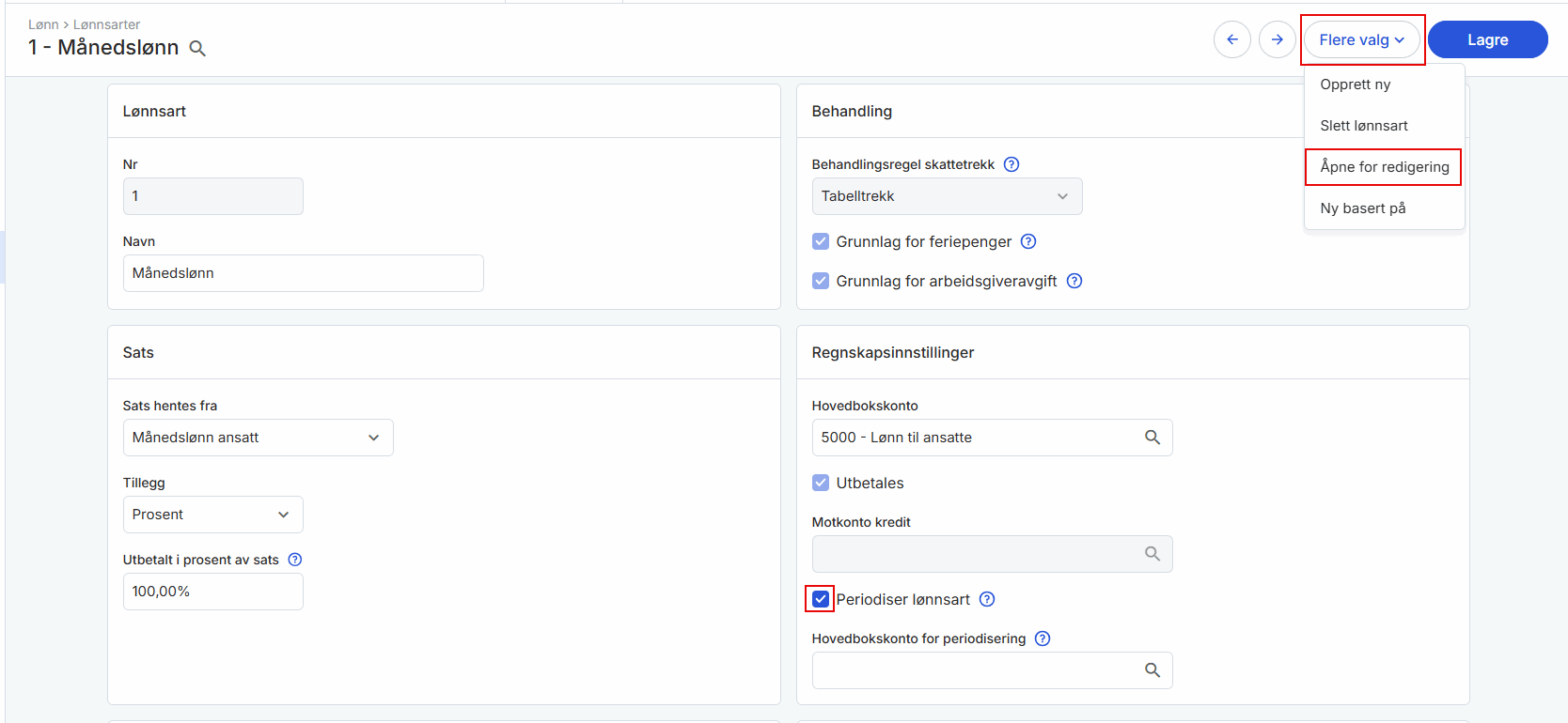 5. Sett hake for Periodiser lønnsart.