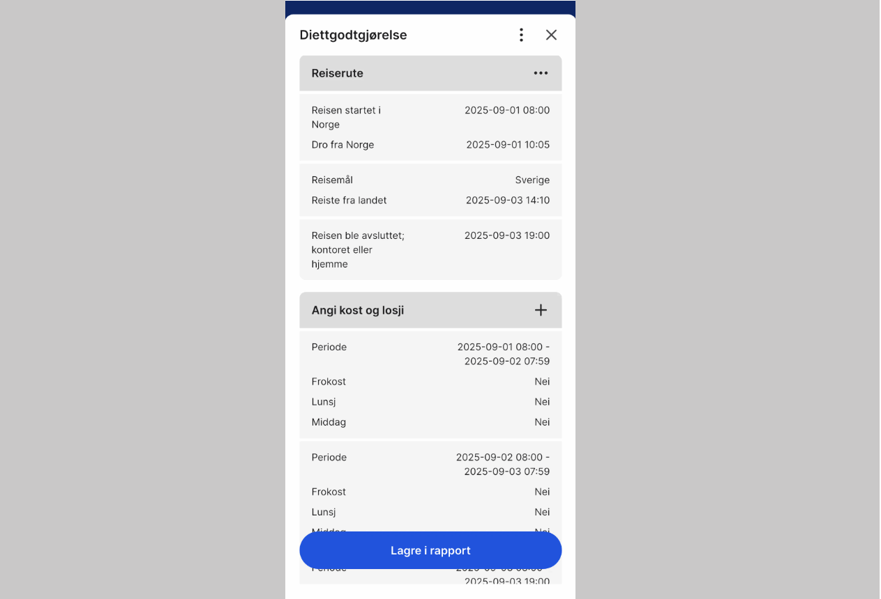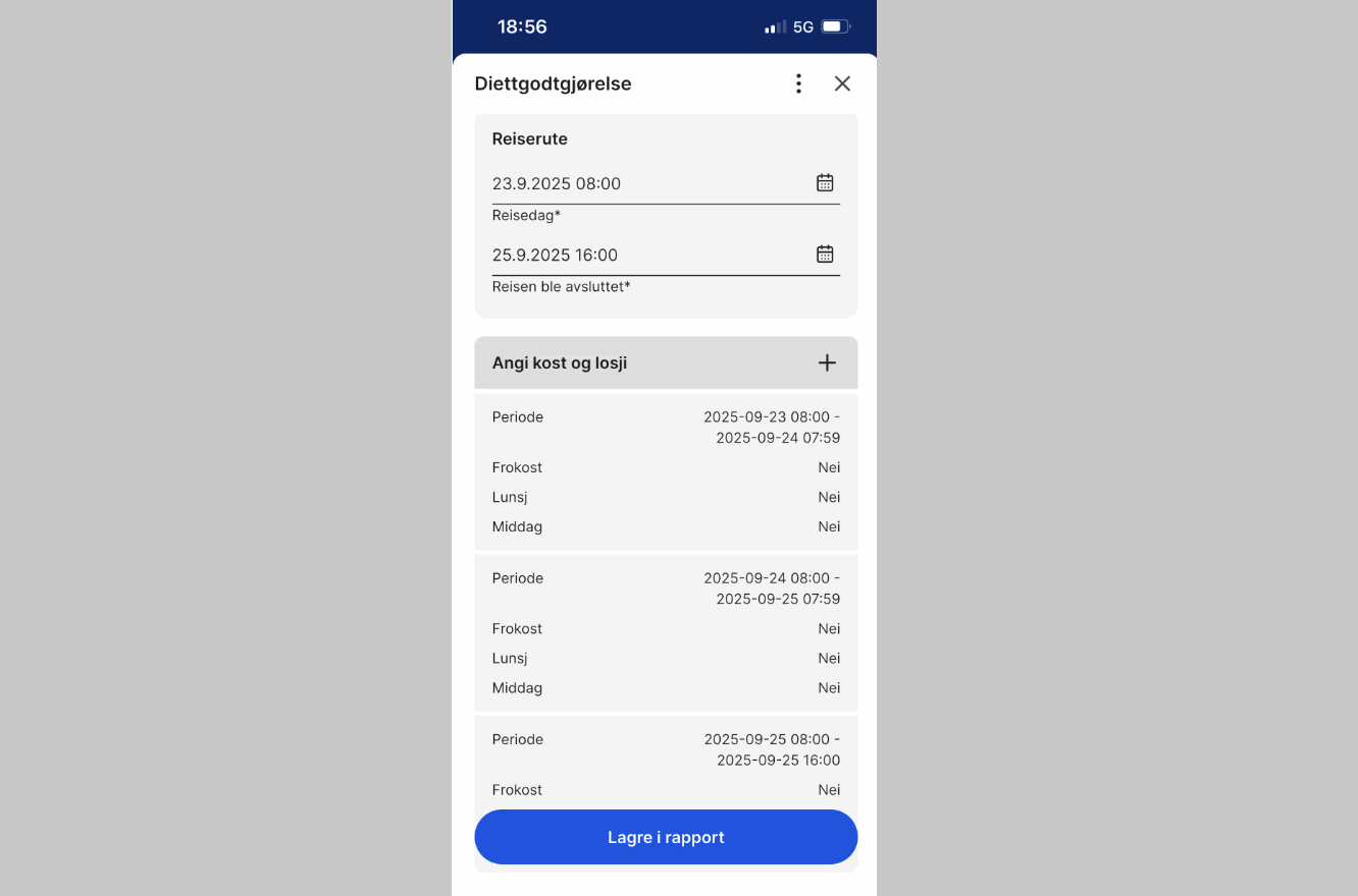 - Når alle feltene er fylt ut, blir feltet for kost og losji synlig.