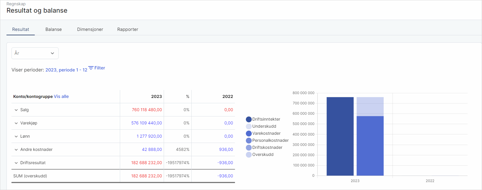 3. Analyser resultatet: Gå deretter gjennom resultatregnskapet for å identifisere inntekter, kostnader og resultat. Sammenlign resultatene med tidligere perioder for å avdekke eventuelle avvik eller trender.