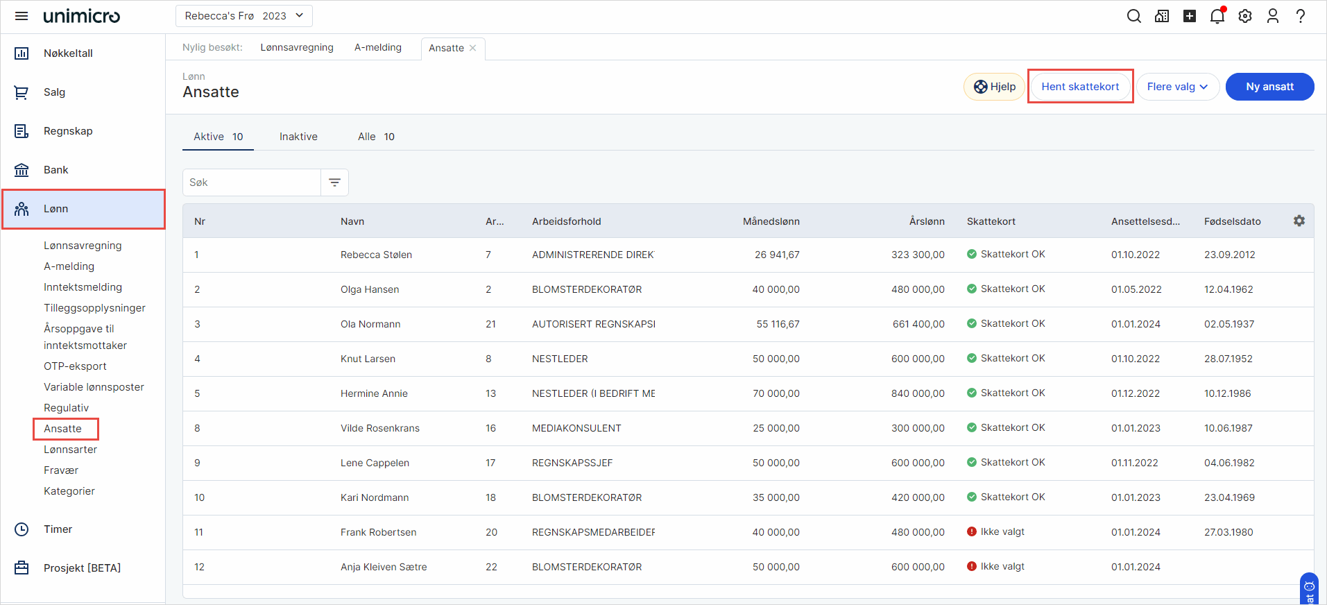 - Hent kun endrede skattekort: Kun ansatte som har endret skattekortet siden forrige henting.