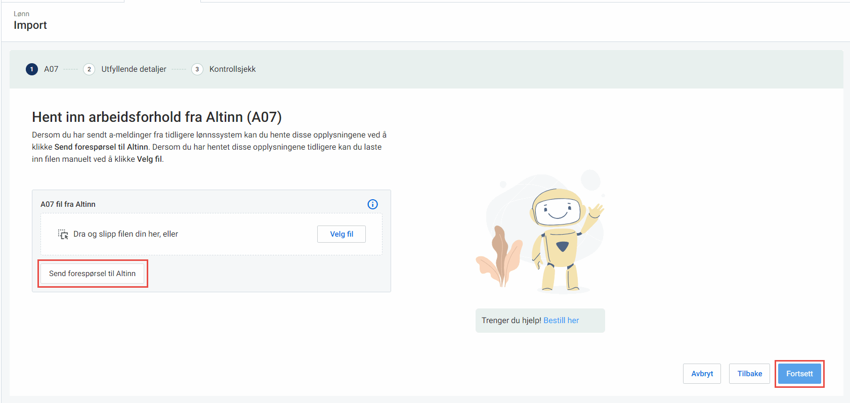 - Permisjoner importeres via Altinn (A07). Dette krever at oppsett mot Altinn er satt opp på forhånd eller at du har en A07 klar til opplastning.