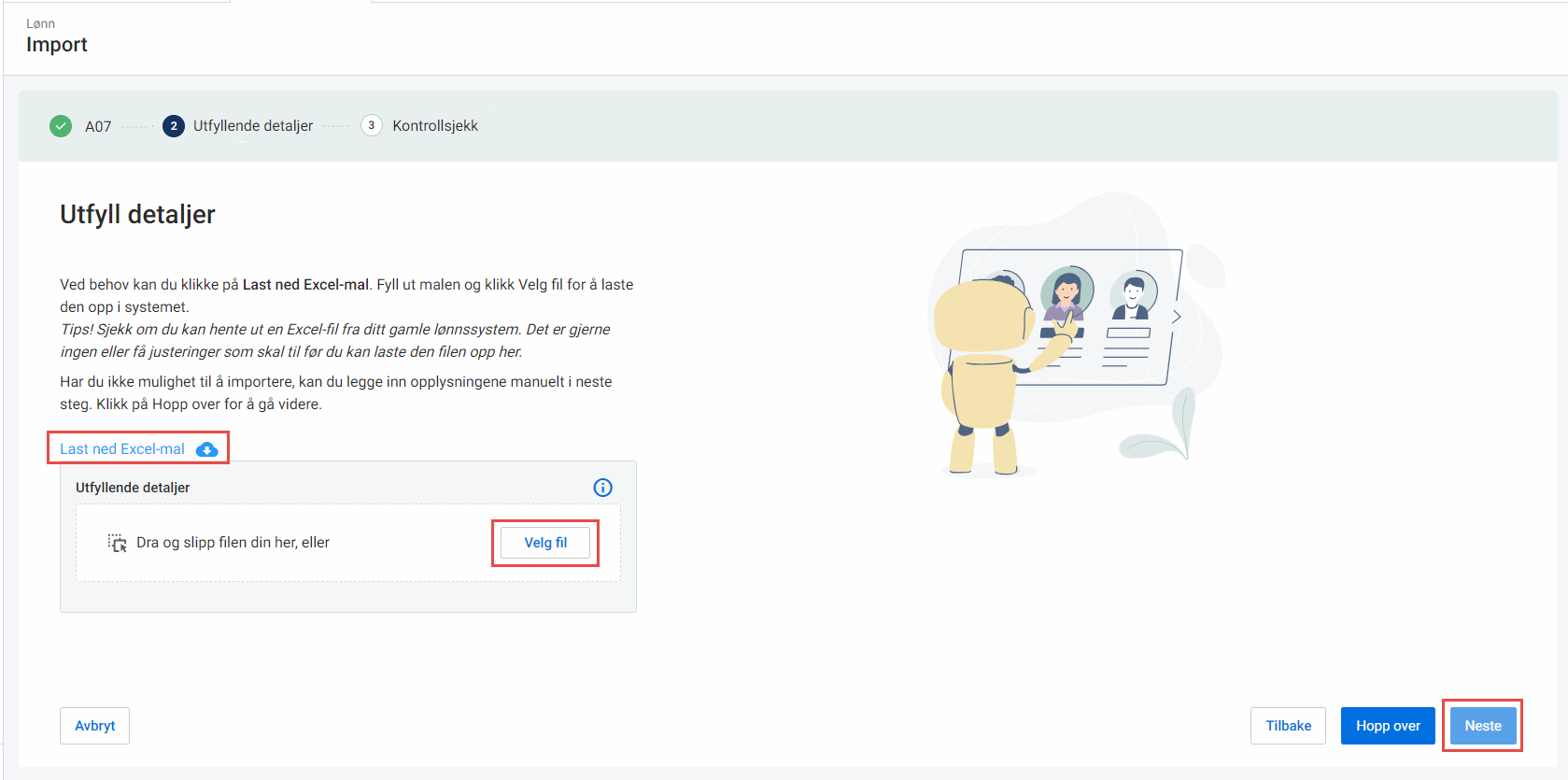 Tips: Sjekk om du kan hente ut en Excel-fil fra ditt gamle lønnssystem før du starter.