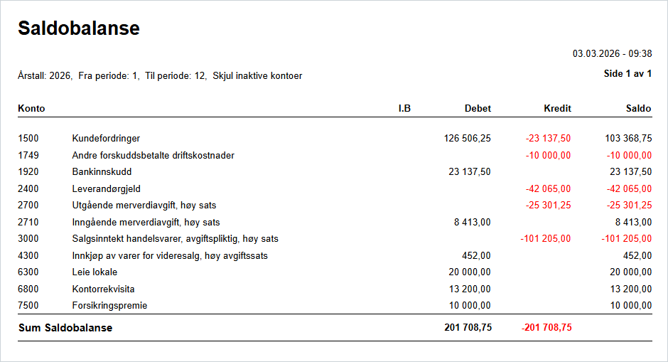 Pass på at rapporten går i null. Hvis den ikke går i null, har du enten registrert feil beløp eller så stemmer ikke grunnlagstallene fra det tidligere systemet.