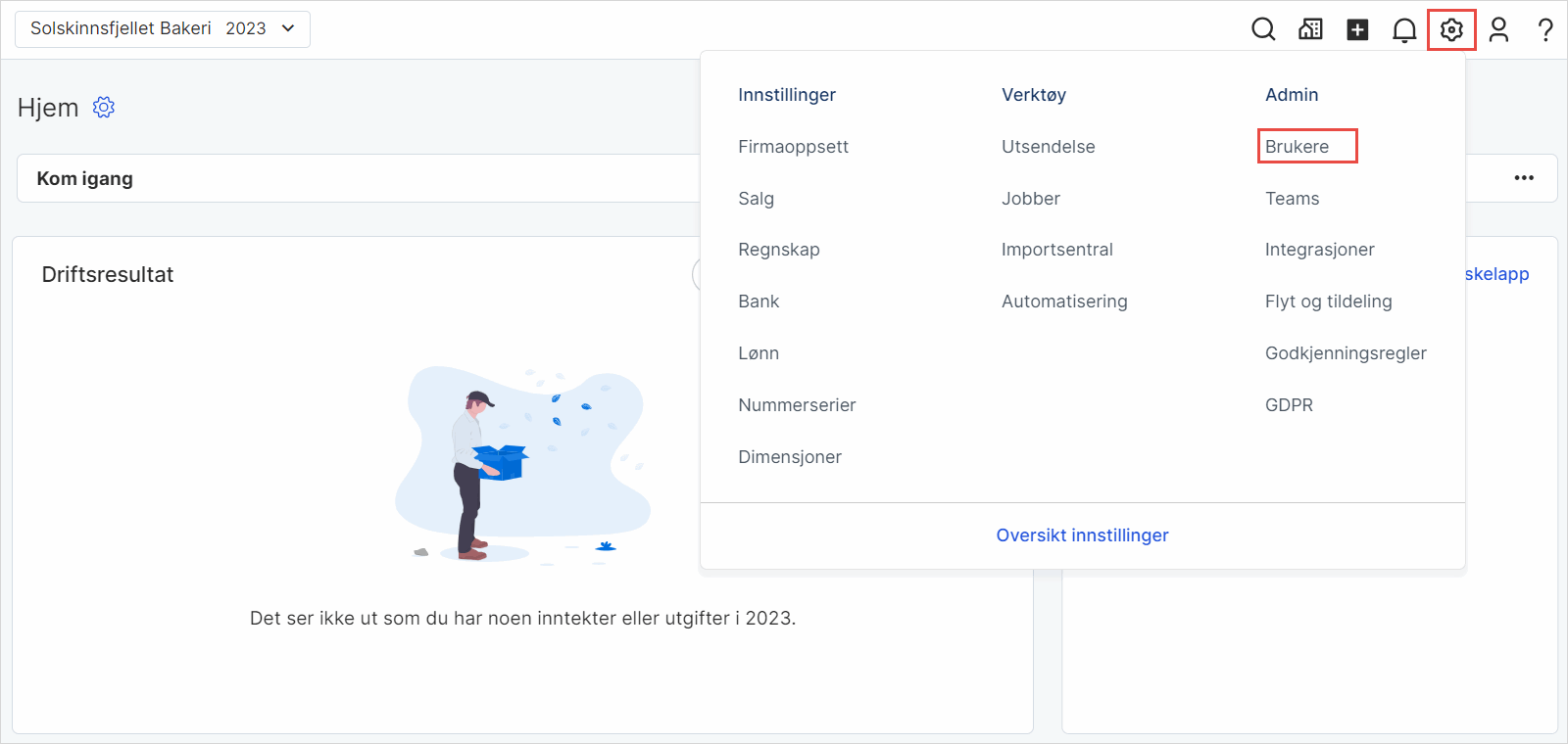 Aktivere/deaktivere en bruker Sist oppdatert 27.12.2023 1. Gå til Innstillinger i toppmenyen og velg Brukere. 2. Klikk på den brukeren du vil deaktivere, og deretter på de tre kulepunktene til høyre. Velg Deaktiver bruker. På samme måte kan du reaktivere en bruker som er deaktivert.
