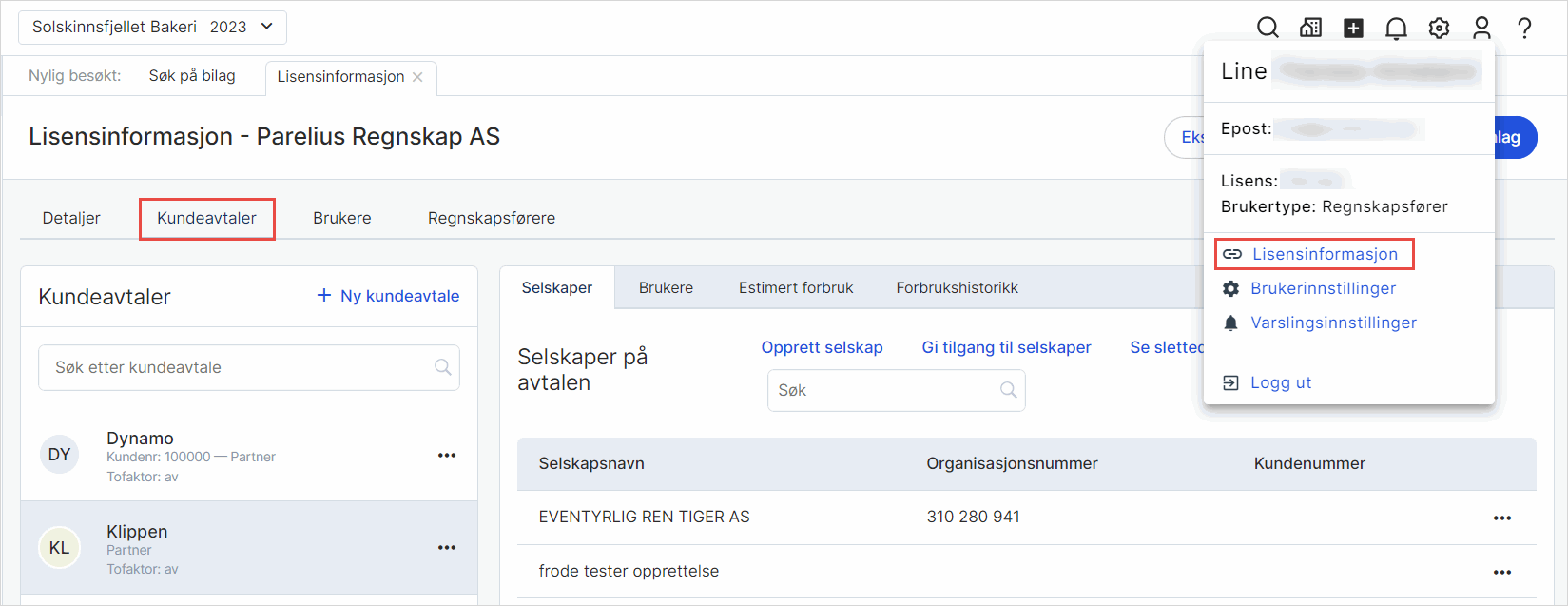 1. Gå Min profil i toppmenyen og velg Lisensinformasjon.