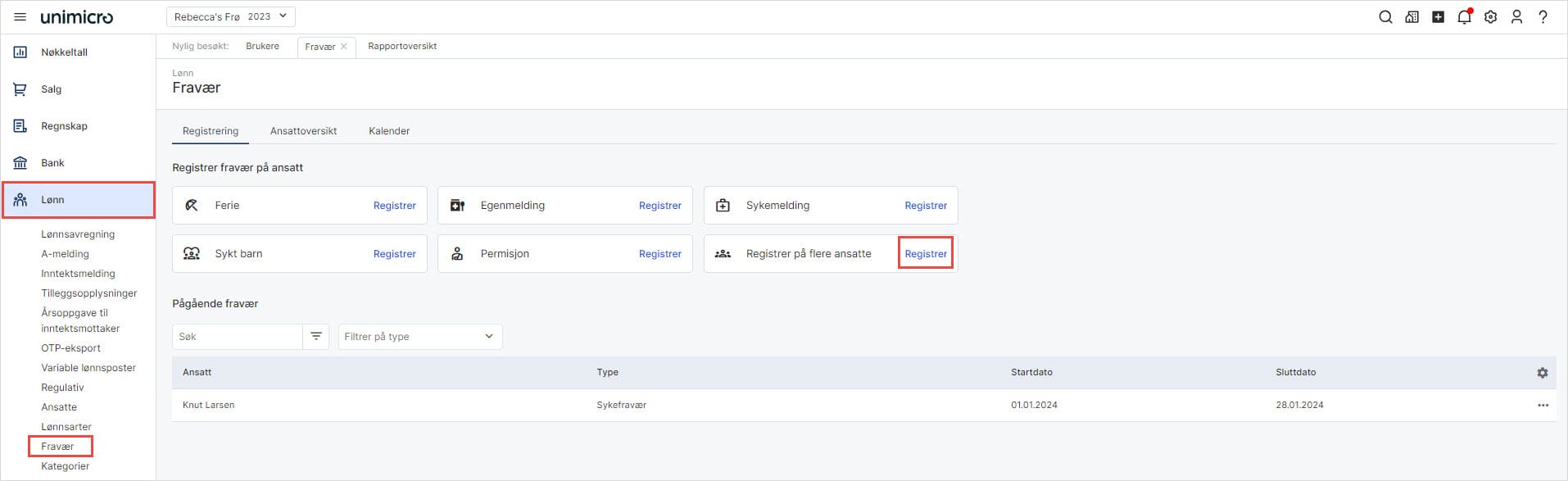 1. Gå til Lønn i venstremenyen og velg Fravær