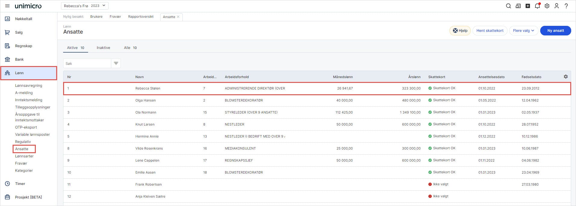 1. Gå til Lønn i venstremenyen og velg Ansatte