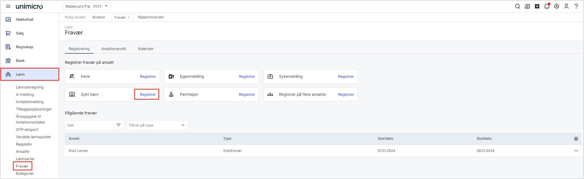 1. Gå til Lønn i venstremenyen og velg Fravær