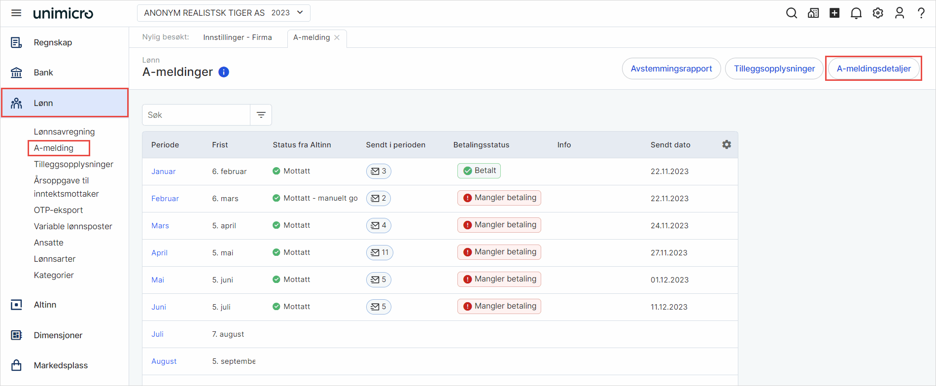 1. Gå til Lønn i venstremenyen og velg A-melding.