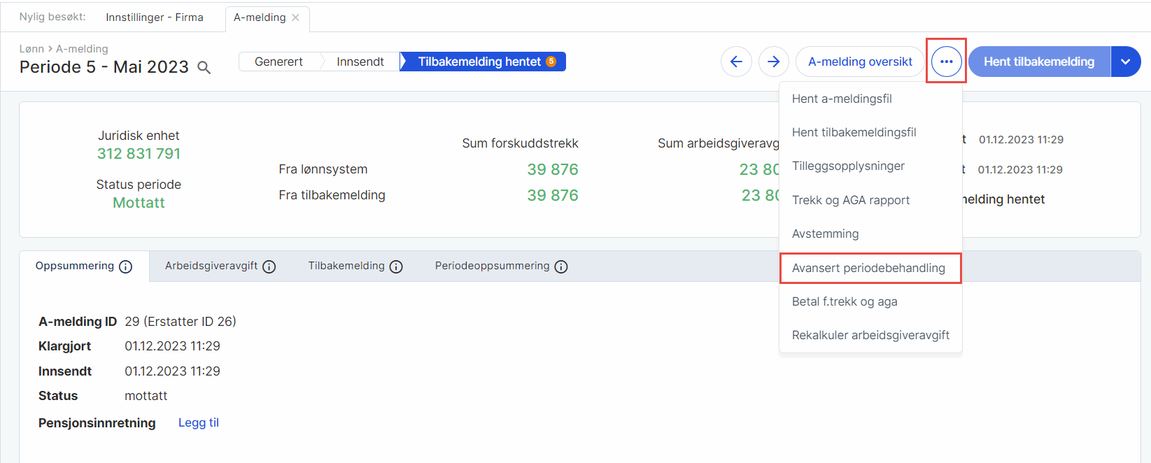 2. Klikk på A-meldingsdetaljer.