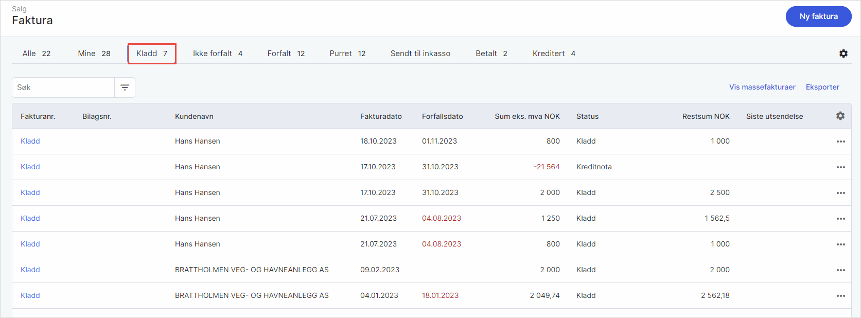 2. Klikk på fanen Kladd og velg aktuell faktura/ordre/tilbud. Du kan også redigere kladden fra dette bildet