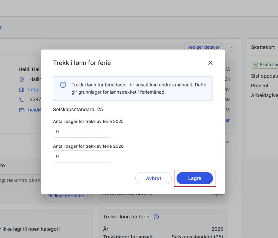 Slik redigerer du trekkdager på en ansatt