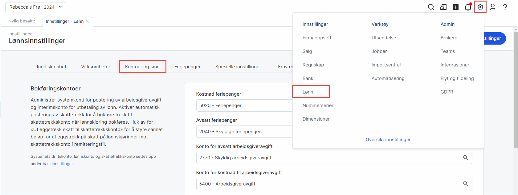 1. Gå til innstillinger i toppmenyen og velg Lønn.