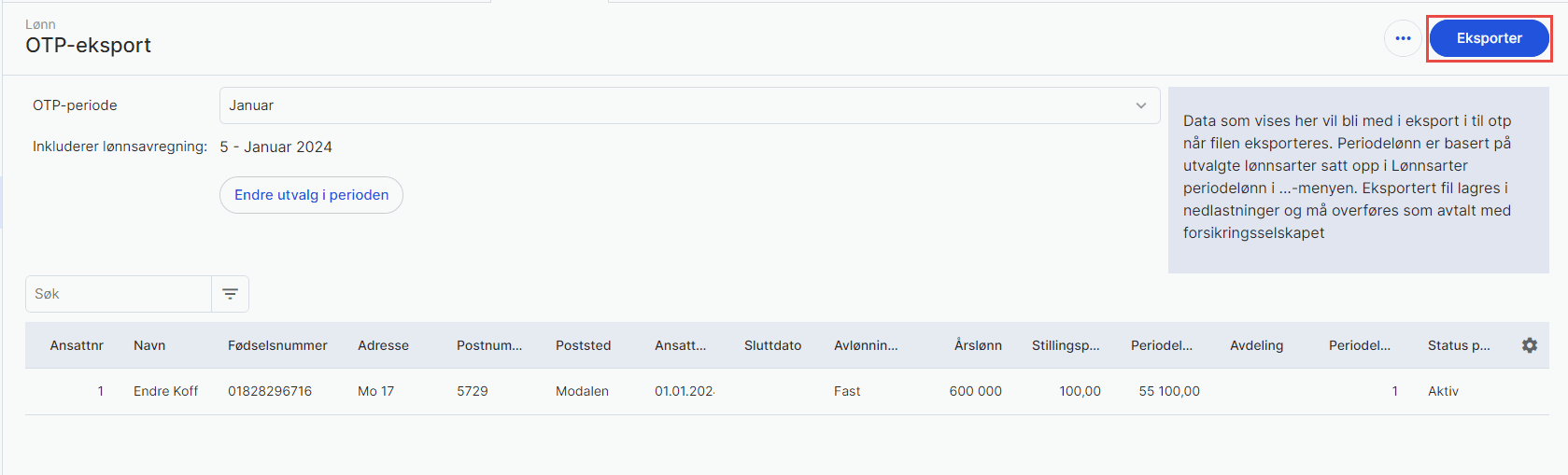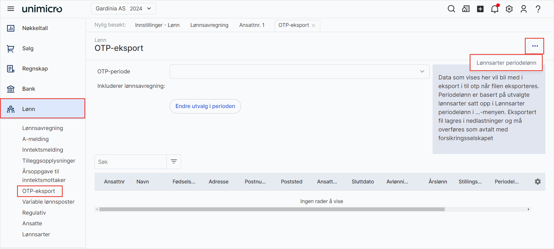 1. Gå til Lønn i venstremenyen og velg OTP-eksport.