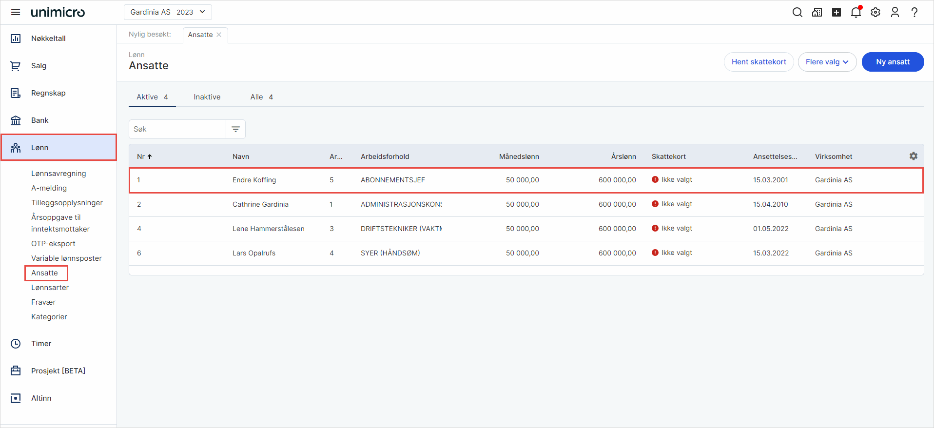 1. Gå til Lønn i venstremenyen og velg Ansatte.