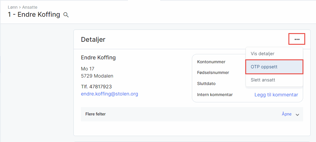 3. Klikk på de tre kulepunktene og velg OTP oppsett.