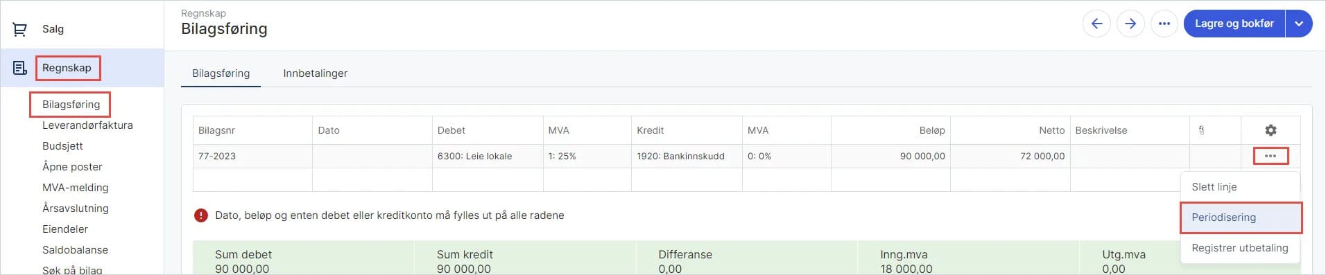 - Når du krediterer et periodisert bilag over flere år, vil alle bilagene knyttet til periodiseringen bli kreditert. Les mer om kreditering.