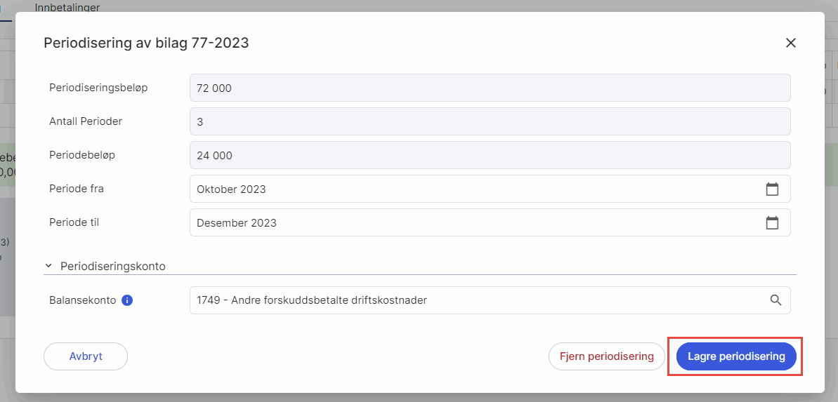 Periodisering innebærer at du bokfører kostnader og inntekter i tilhørende regnskapsmessige periode. Du kan periodisere både fremover og bakover i tid.