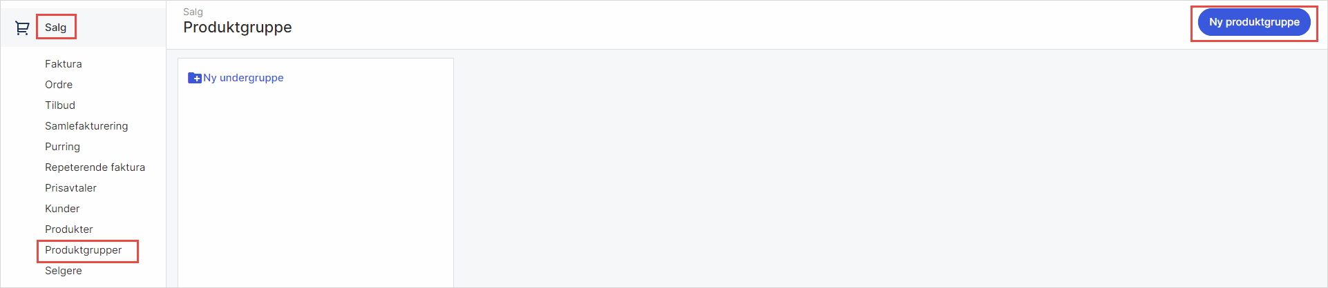 1. Gå til Salg i venstremenyen og velg Produktgrupper. Klikk på Ny produktgruppe.