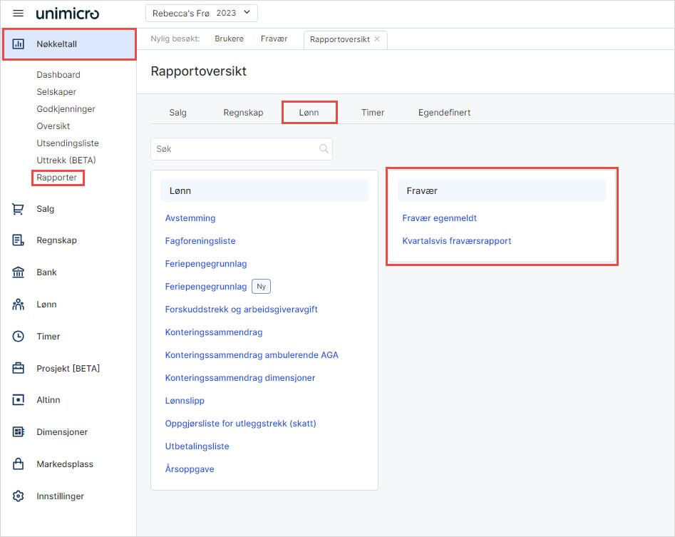 1. Gå til Nøkkeltall i venstremenyen og velg Rapporter