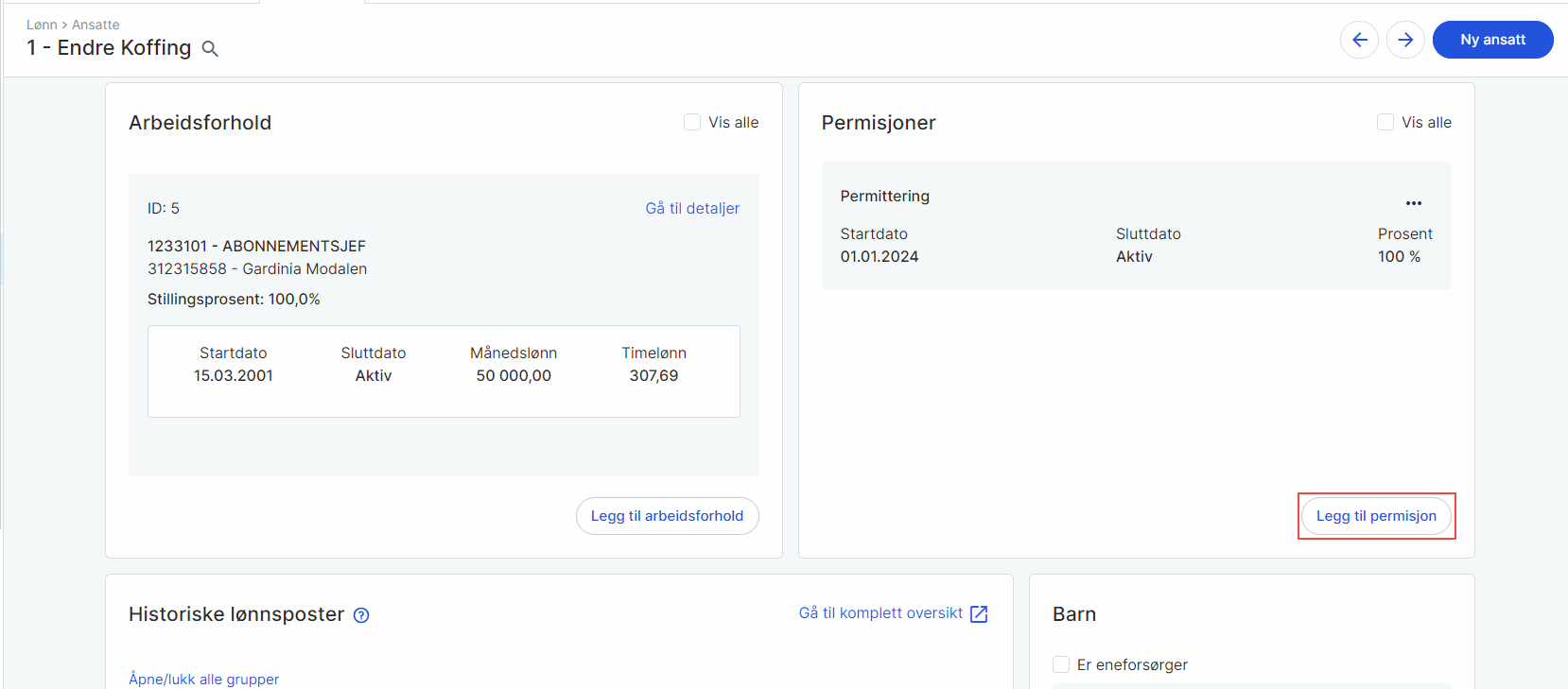 For å endre permitteringsprosent, må du avslutte eksisterende permittering med den datoen endringen skjedde. Deretter må du opprette ny permittering med ny prosent og startdato.