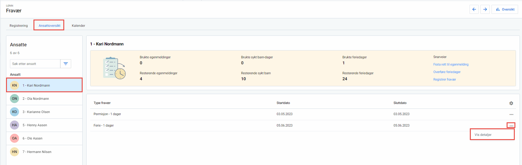 1. Klikk på Ansattoversikt og velg aktuell ansatt