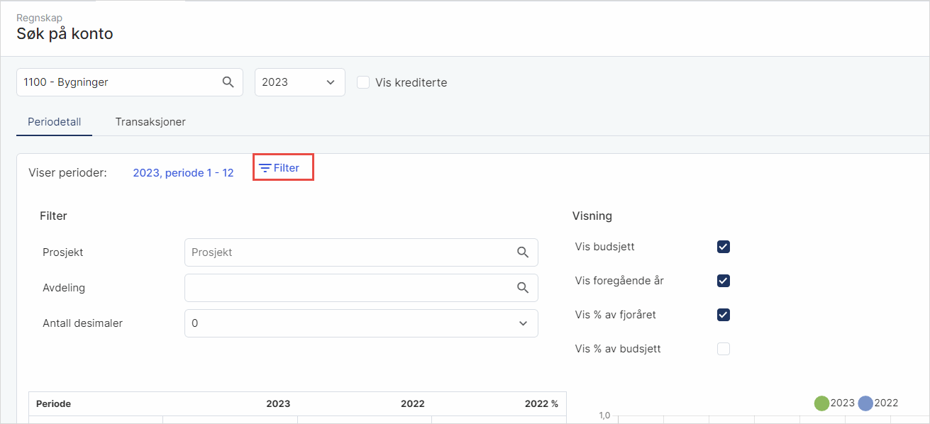 Du kan endre periodevisning ved å klikke på teksten etter Viser perioder.