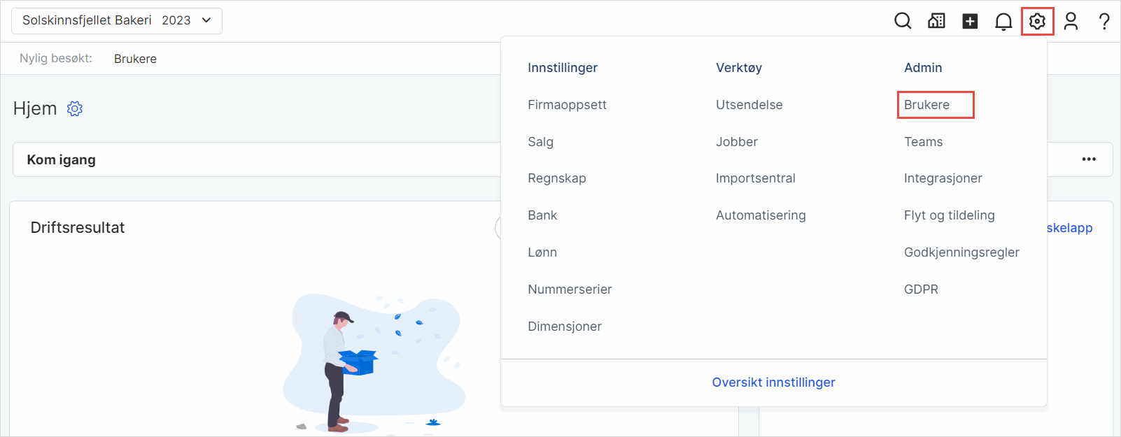 Gå til Innstillinger i toppmenyen og velg Brukere.