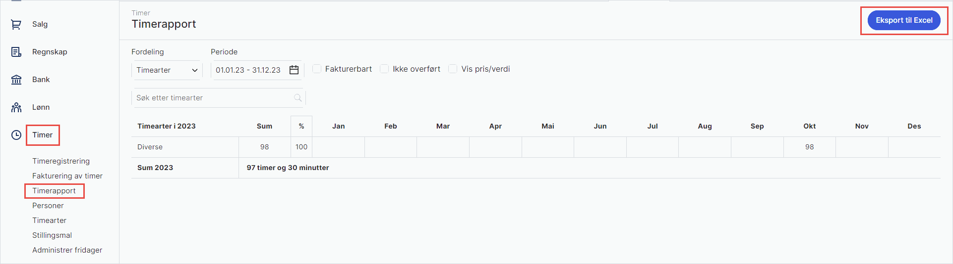 1. Gå til Timer i venstremenyen og velg Timerapport.