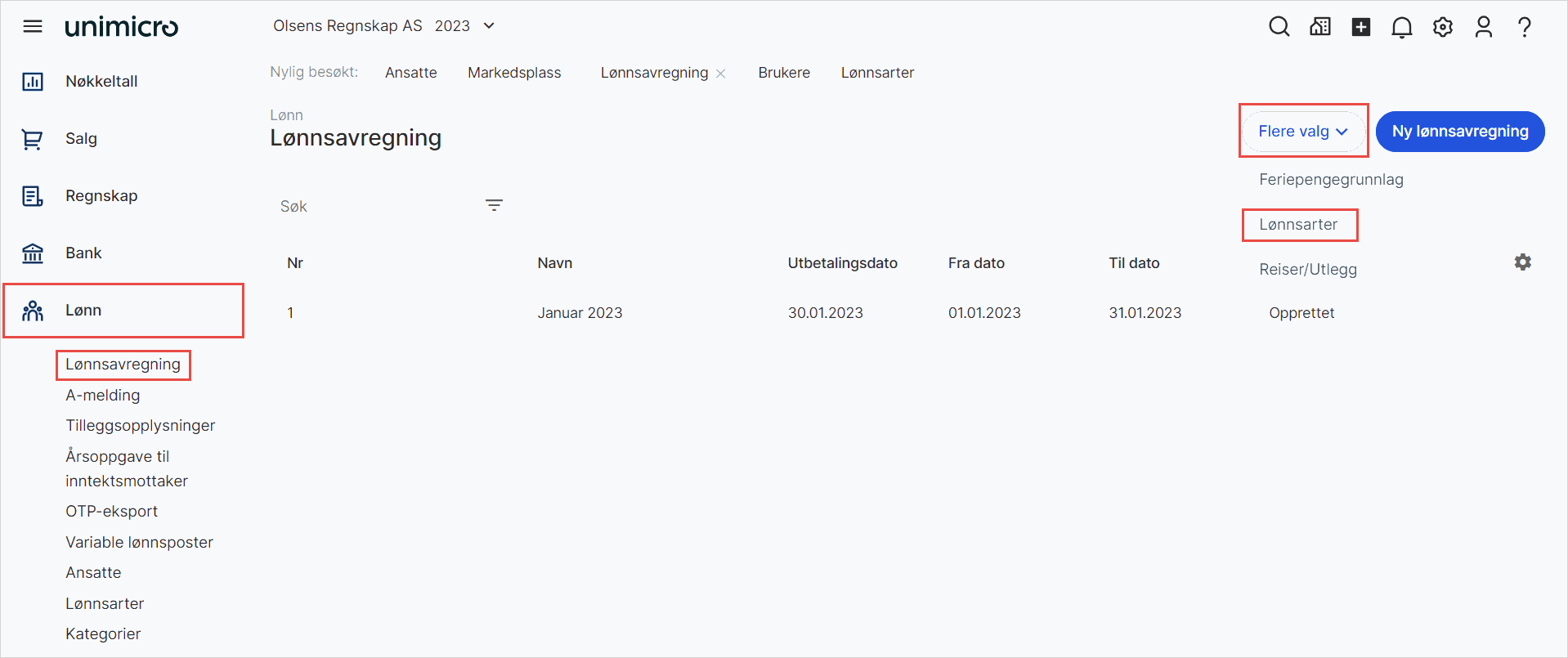 1. Gå til Lønn i venstremenyen og velg Lønnsarter. Klikk på Ny lønnsart.