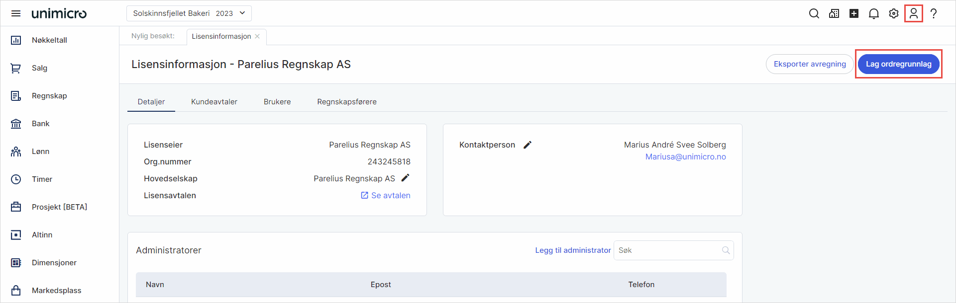 1. Gå til Min profil i toppmenyen og velg Lisensinformasjon.
